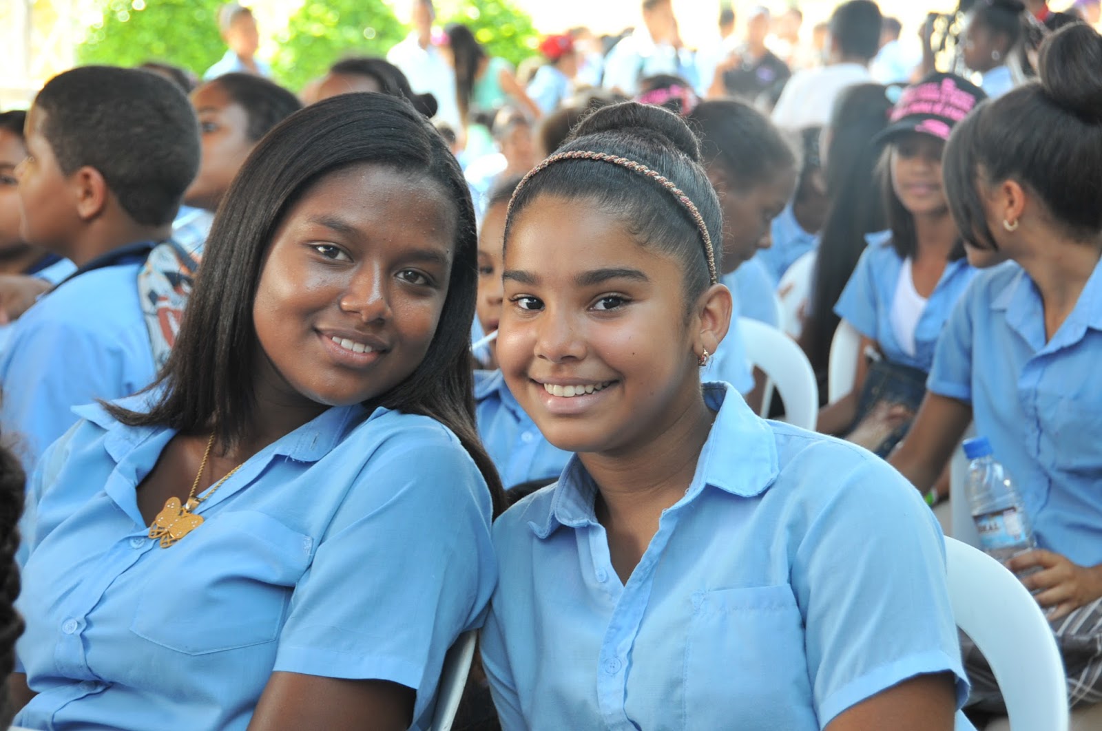 | Rostros felices de estudiantes que asistieron al acto |